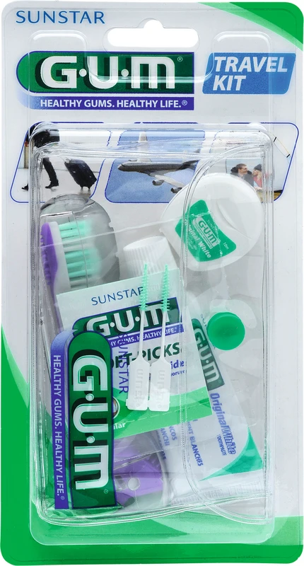 Set 1 Reisezahnbürste, 12 ml GUM Original White Zahnpasta, 10 m Zahnseide, 2 SOFT-PICKS Interdentalreiniger
