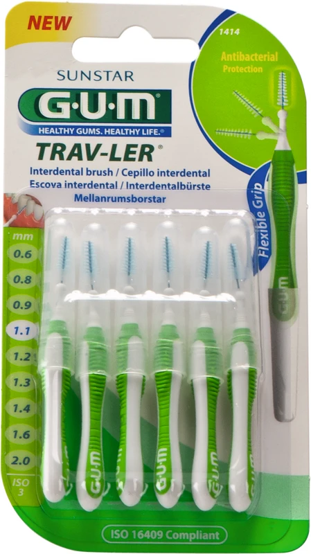GUM® TRAV-LER® Interdentalbürsten Blisterpackung 6 Stück Tanne, grün, Ø 1,1 mm