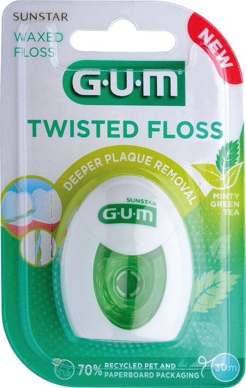 Produktinformationen "GUM® TWISTED FLOSS Packung 30 m, gewachst, Minze-Grüntee-Geschmack"