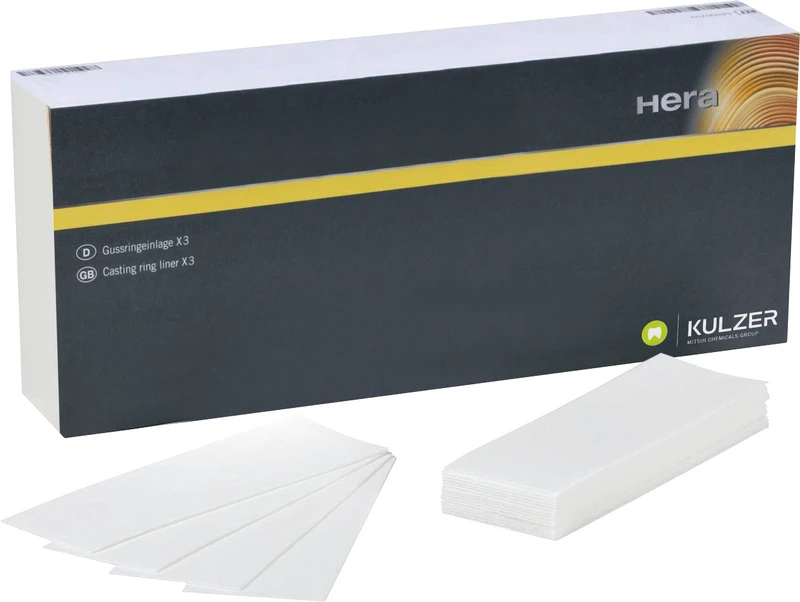 Die Gussringeinlagen bestehen aus flexiblen, keramischen Fasern und sind leicht in die Gussküvetten einzulegen. Zuschnitte passen in die Stahlmuffeln.
