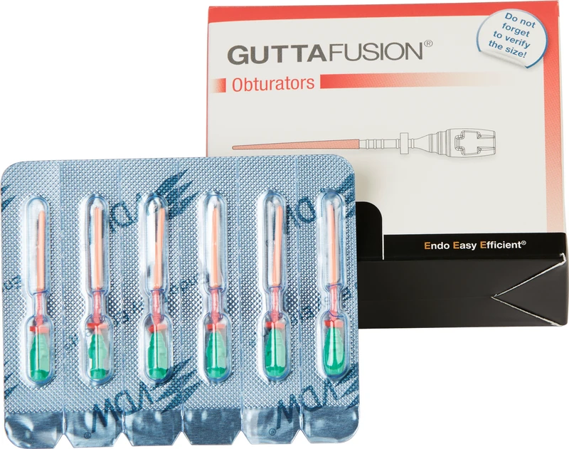 Universelles System zur 3-dimensionalen Obturation nach Aufbereitung mit rotierenden NiTi-Systemen. Zur korrekten Auswahl des passenden Obturators ist das Verwenden des GUTTAFUSION® Size Verifiers bei diesem System obligatorisch.