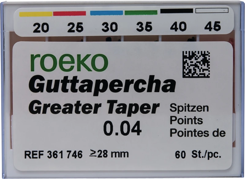 Guttaperchaspitzen Greater Taper dienen zur Abfüllung von Wurzelkanälen, die mit Aufbereitungssystemen wie GT-Files, Hero, ProFile etc. aufbereitet wurden.