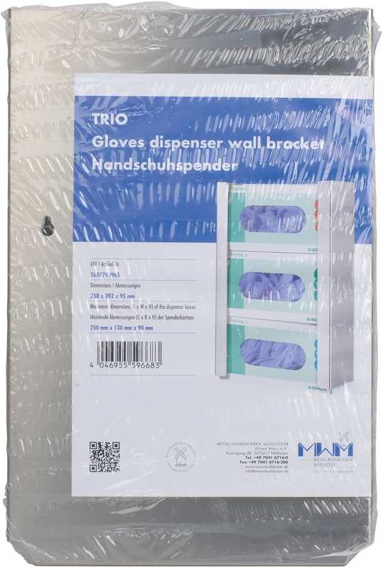 Stück TRIO Handschuh-Wandhalterung 258 x 392 x 95 mm, für Vasco® Nitril (150 Stück/Packung), Vasco® Sensitive, Vasco® Basic (100 Stück/Packung), Vasco® Nitril Soft white/blue (200 Stück/Packung)