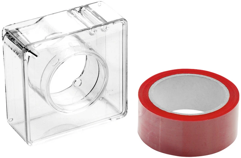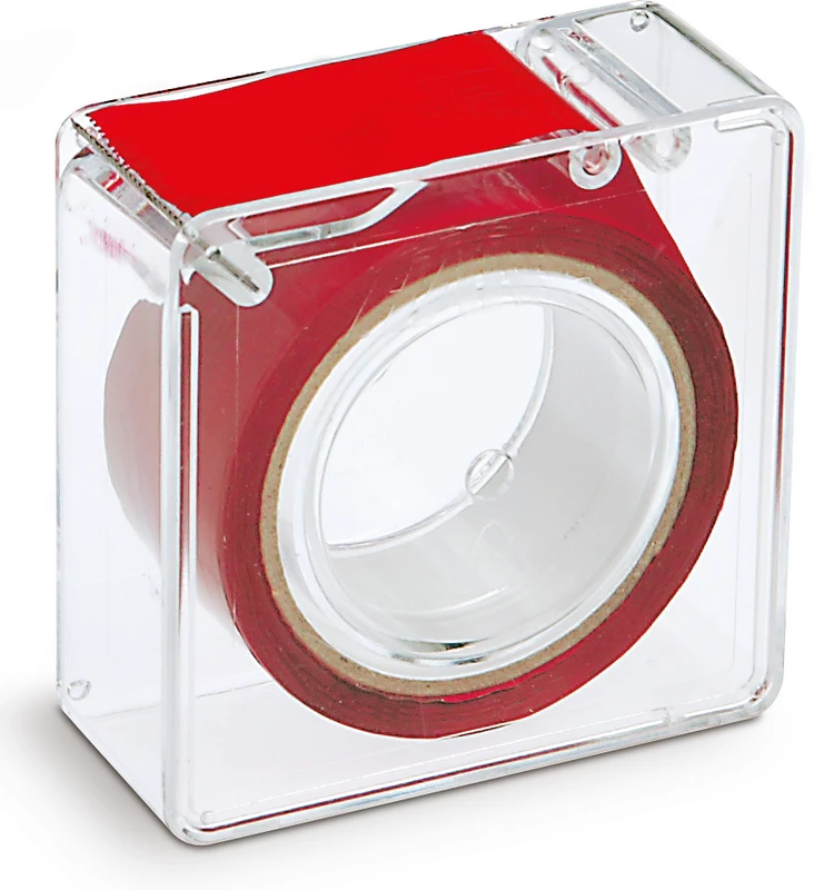 Spender für 22 mm Rollen, farblos, mit Edelstahl-Messer, ermöglicht einfachen Abriss in der gewünschten Länge.
