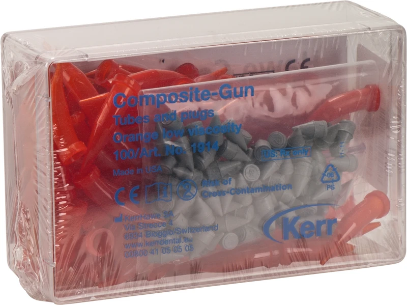 Die vielseitig anwendbare Pistole für blasenfreie Applikation von Füllungs- und Befestigungsmaterialien. Die verschiedenen Spitzen zur Composite-Gun bieten ein breites Spektrum an Einsatzmöglichkeiten wie z. B. die Applikation von Füllungsmaterialien, Liners, Befestigungszementen usw. Die Vorabfüllung der Materialien in die Spitzen (lichthärtende Materialien in die orangen Spitzen) und deren Kennzeichnung durch die farbigen Kappen ergibt eine Zeitersparnis während der Behandlung.