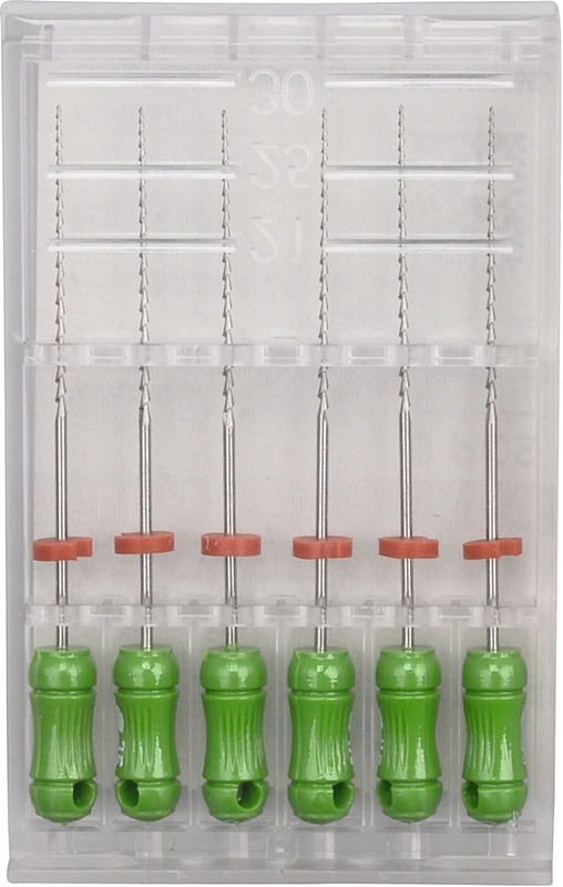 Ausgeprägt scharfes und widerstandsfähiges Instrument, hohe Schneideeffizienz, Stärken und Farben nach ISO-Norm, farbcodierter Plastikgriff (B-Typ), nummerierter Kopf.
