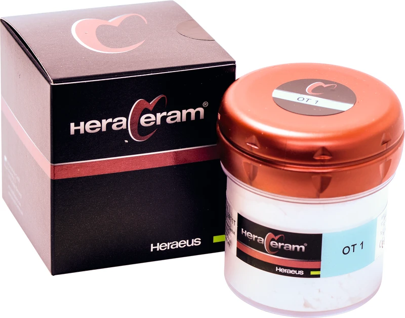 HeraCeram® ist die hochschmelzende Verblendkeramik für Aufbrennlegierungen in einem WAK-Bereich von 13,5 14,9 m/mK. Aufgrund der niedrigen Brenntemperaturen von maximal 880 C können alle Legierungen in diesem WAK-Bereich sicher verarbeitet werden. Zur ästhetischen Gestaltung bietet HeraCeram® neben optimal auf einander abgestimmte Opaker, Dentin- und Schneidemassen ein umfassendes Sortiment an Individualmassen. Sie erzielen auch bei geringen Schichtstärken zuverlässige Farbergebnisse. Die Standfestigkeit der Massen und der geringe Brennschrumpf sorgen für eine hohe Formstabilität der Verblendung. Mit einer dichten, extrem glatten Oberfläche schützt HeraCeram® den Antagonisten und sorgt für hohe Plaqueresistenz und Gingivafreundlichkeit.
