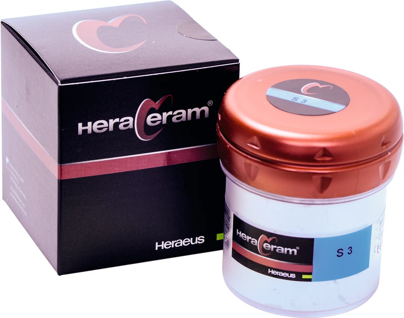 HeraCeram® ist die hochschmelzende Verblendkeramik für Aufbrennlegierungen in einem WAK-Bereich von 13,5 14,9 m/mK. Aufgrund der niedrigen Brenntemperaturen von maximal 880 C können alle Legierungen in diesem WAK-Bereich sicher verarbeitet werden. Zur ästhetischen Gestaltung bietet HeraCeram® neben optimal auf einander abgestimmte Opaker, Dentin- und Schneidemassen ein umfassendes Sortiment an Individualmassen. Sie erzielen auch bei geringen Schichtstärken zuverlässige Farbergebnisse. Die Standfestigkeit der Massen und der geringe Brennschrumpf sorgen für eine hohe Formstabilität der Verblendung. Mit einer dichten, extrem glatten Oberfläche schützt HeraCeram® den Antagonisten und sorgt für hohe Plaqueresistenz und Gingivafreundlichkeit.
