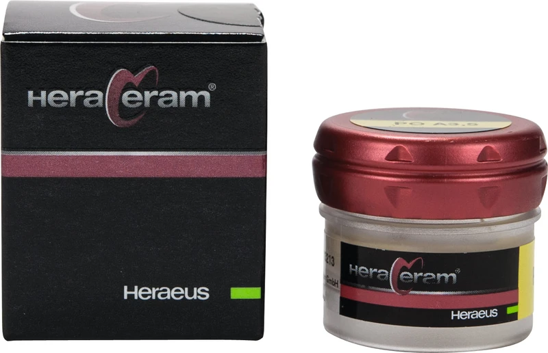 HeraCeram® ist die hochschmelzende Verblendkeramik für Aufbrennlegierungen in einem WAK-Bereich von 13,5 14,9 m/mK. Aufgrund der niedrigen Brenntemperaturen von maximal 880 C können alle Legierungen in diesem WAK-Bereich sicher verarbeitet werden. Zur ästhetischen Gestaltung bietet HeraCeram® neben optimal auf einander abgestimmte Opaker, Dentin- und Schneidemassen ein umfassendes Sortiment an Individualmassen. Sie erzielen auch bei geringen Schichtstärken zuverlässige Farbergebnisse. Die Standfestigkeit der Massen und der geringe Brennschrumpf sorgen für eine hohe Formstabilität der Verblendung. Mit einer dichten, extrem glatten Oberfläche schützt HeraCeram® den Antagonisten und sorgt für hohe Plaqueresistenz und Gingivafreundlichkeit.