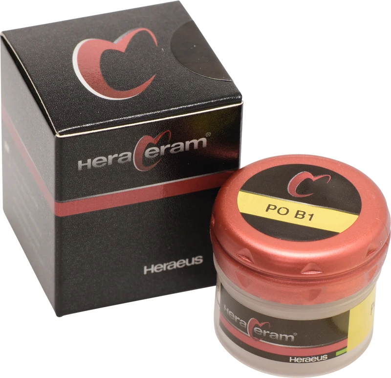 HeraCeram® ist die hochschmelzende Verblendkeramik für Aufbrennlegierungen in einem WAK-Bereich von 13,5 14,9 m/mK. Aufgrund der niedrigen Brenntemperaturen von maximal 880 C können alle Legierungen in diesem WAK-Bereich sicher verarbeitet werden. Zur ästhetischen Gestaltung bietet HeraCeram® neben optimal auf einander abgestimmte Opaker, Dentin- und Schneidemassen ein umfassendes Sortiment an Individualmassen. Sie erzielen auch bei geringen Schichtstärken zuverlässige Farbergebnisse. Die Standfestigkeit der Massen und der geringe Brennschrumpf sorgen für eine hohe Formstabilität der Verblendung. Mit einer dichten, extrem glatten Oberfläche schützt HeraCeram® den Antagonisten und sorgt für hohe Plaqueresistenz und Gingivafreundlichkeit.