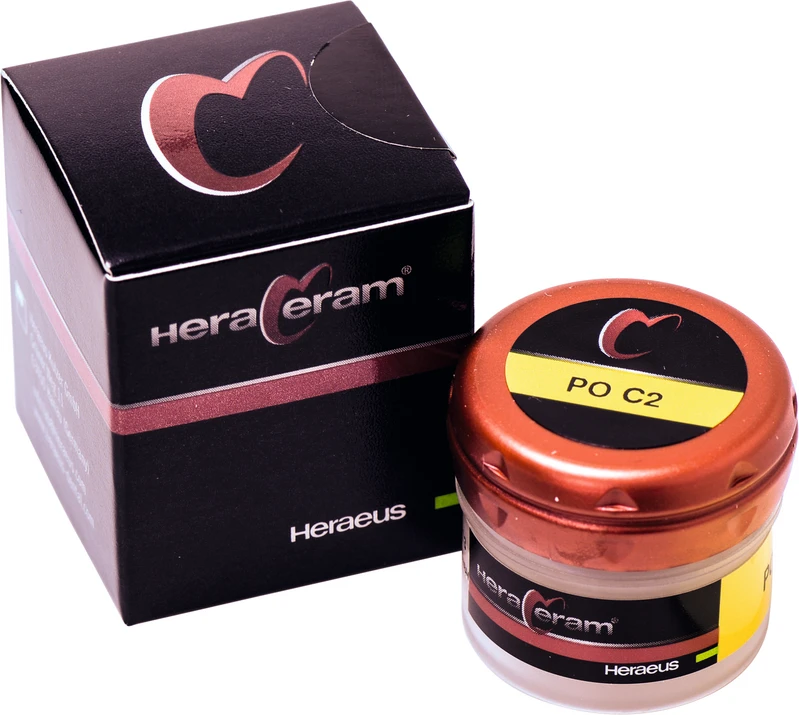 HeraCeram® ist die hochschmelzende Verblendkeramik für Aufbrennlegierungen in einem WAK-Bereich von 13,5 14,9 m/mK. Aufgrund der niedrigen Brenntemperaturen von maximal 880 C können alle Legierungen in diesem WAK-Bereich sicher verarbeitet werden. Zur ästhetischen Gestaltung bietet HeraCeram® neben optimal auf einander abgestimmte Opaker, Dentin- und Schneidemassen ein umfassendes Sortiment an Individualmassen. Sie erzielen auch bei geringen Schichtstärken zuverlässige Farbergebnisse. Die Standfestigkeit der Massen und der geringe Brennschrumpf sorgen für eine hohe Formstabilität der Verblendung. Mit einer dichten, extrem glatten Oberfläche schützt HeraCeram® den Antagonisten und sorgt für hohe Plaqueresistenz und Gingivafreundlichkeit.