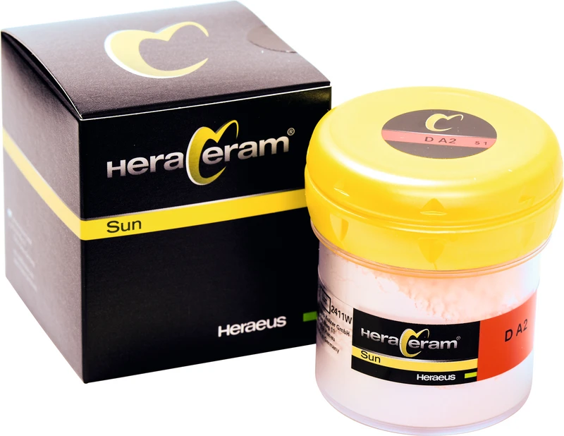 HeraCeram® Sun ist die niedrigschmelzende Keramiklinie im HeraCeram System. Sie deckt den WAK-Bereich v on 15,7-16,7 µm/mK zuverlässig ab. Die niedrigen Brenntemperaturen von maximal 790 °C gewährleisten eine sichere Verarbeitung niedrigschmelzender Legierungen. Damit ist HeraCeram® Sun optimal auf die HeraSun- und Universal-Legierungen von Heraeus abgestimmt.