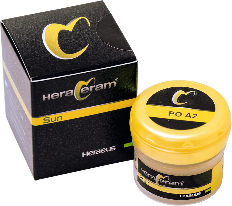 HeraCeram® Sun ist die niedrigschmelzende Keramiklinie im HeraCeram System. Sie deckt den WAK-Bereich v on 15,7-16,7 µm/mK zuverlässig ab. Die niedrigen Brenntemperaturen von maximal 790 °C gewährleisten eine sichere Verarbeitung niedrigschmelzender Legierungen. Damit ist HeraCeram® Sun optimal auf die HeraSun- und Universal-Legierungen von Heraeus abgestimmt.