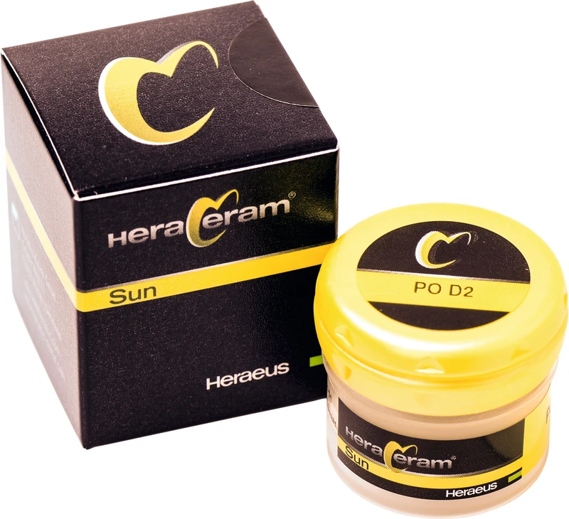 HeraCeram® Sun ist die niedrigschmelzende Keramiklinie im HeraCeram System. Sie deckt den WAK-Bereich v on 15,7-16,7 µm/mK zuverlässig ab. Die niedrigen Brenntemperaturen von maximal 790 °C gewährleisten eine sichere Verarbeitung niedrigschmelzender Legierungen. Damit ist HeraCeram® Sun optimal auf die HeraSun- und Universal-Legierungen von Heraeus abgestimmt.