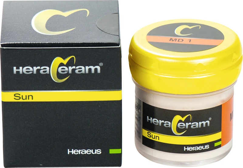 HeraCeram® Sun ist die niedrigschmelzende Keramiklinie im HeraCeram System. Sie deckt den WAK-Bereich v on 15,7-16,7 µm/mK zuverlässig ab. Die niedrigen Brenntemperaturen von maximal 790 °C gewährleisten eine sichere Verarbeitung niedrigschmelzender Legierungen. Damit ist HeraCeram® Sun optimal auf die HeraSun- und Universal-Legierungen von Heraeus abgestimmt.