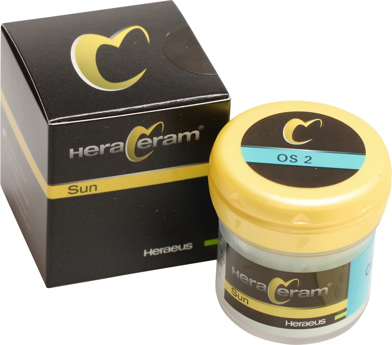 HeraCeram® Sun ist die niedrigschmelzende Keramiklinie im HeraCeram System. Sie deckt den WAK-Bereich v on 15,7-16,7 µm/mK zuverlässig ab. Die niedrigen Brenntemperaturen von maximal 790 °C gewährleisten eine sichere Verarbeitung niedrigschmelzender Legierungen. Damit ist HeraCeram® Sun optimal auf die HeraSun- und Universal-Legierungen von Heraeus abgestimmt.