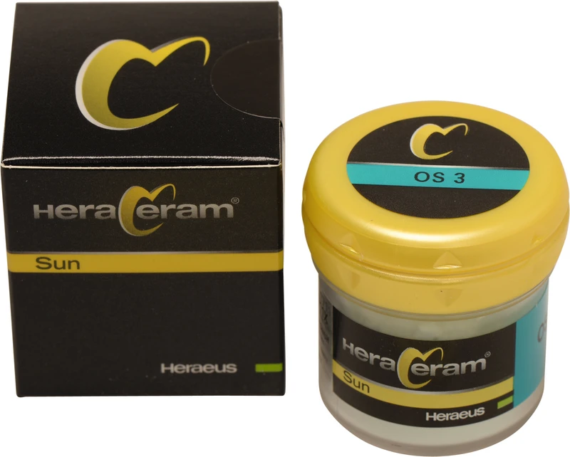 HeraCeram® Sun ist die niedrigschmelzende Keramiklinie im HeraCeram System. Sie deckt den WAK-Bereich v on 15,7-16,7 µm/mK zuverlässig ab. Die niedrigen Brenntemperaturen von maximal 790 °C gewährleisten eine sichere Verarbeitung niedrigschmelzender Legierungen. Damit ist HeraCeram® Sun optimal auf die HeraSun- und Universal-Legierungen von Heraeus abgestimmt.