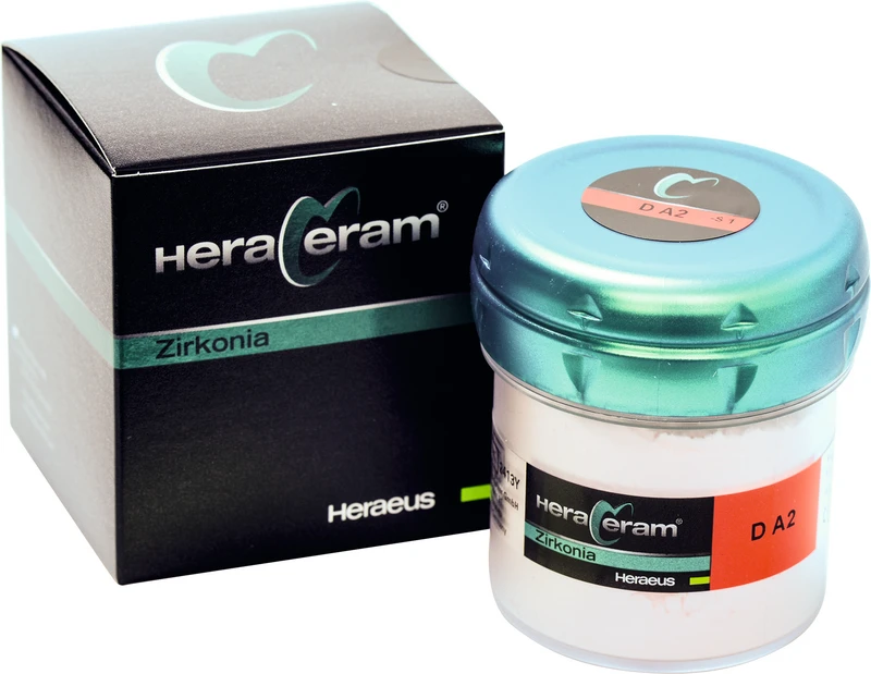 Hochästhetisch, sicher und effizient. Die stabilisierte Leuzit-Struktur (SLS) schützt vor Risswachstum und vor Chipping. Dank SLS bietet HeraCeram Zirkonia höchste Sicherheit in der Verblendung von Zirkonoxid.Das pastenförmige HeraCeram Zirkonia Adhesive sichert den maximalen Haftverbund der Verblendkeramik zum Zirkonoxidgerüst ohne riskantes Abstrahlen der empfindlichen Zirkonoxidoberfläche.Für die individuelle Finalisierung monolithischer Vollzirkonoxid-Arbeiten haben wir die pastenförmigen Malfarben HeraCeram Stains universal entwickelt.Die Universalmalfarben passen sich in ihrem Brennverhalten perfekt an die Eigenschaften von HeraCeram Zirkonia an. Damit sichern Sie eine perfekte Farbgestaltung, ohne den Lichtfluss durch das transluzente Zirkonoxidgerüst zu beeinträchtigen.