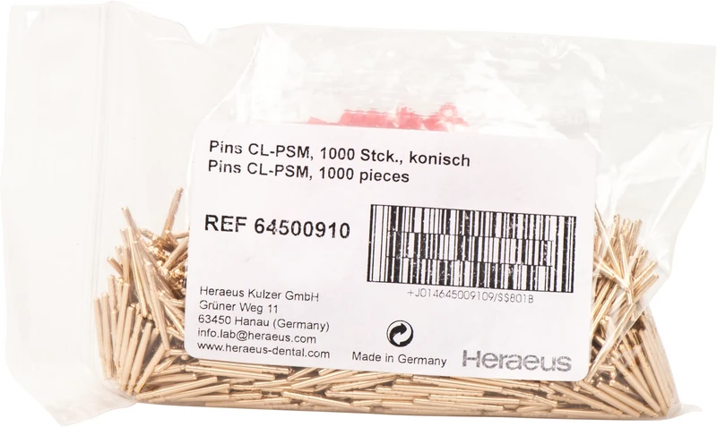 Produktinformationen "Heraeus Pin-System Packung 1.000 konische Pins, messing"