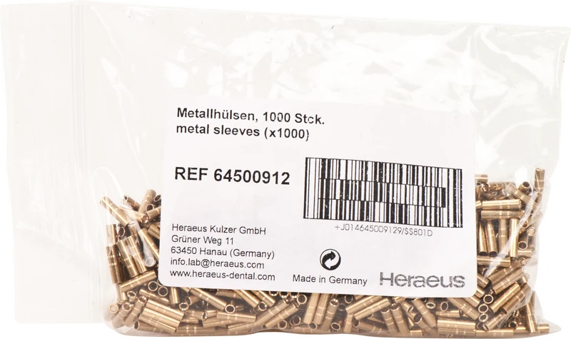 Heraeus Pin-System Packung 1.000 Metallhülsen, messing