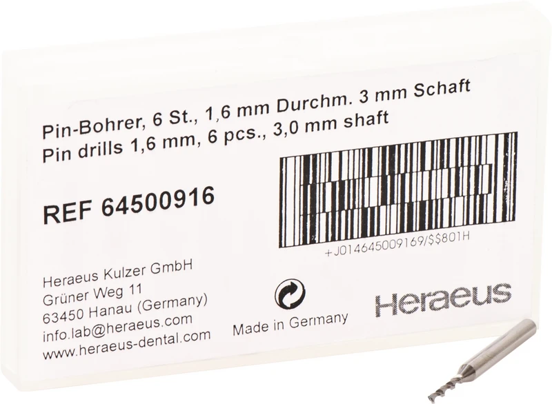Heraeus Pin-System Packung 6 Pinbohrer Ø 1,6 mm