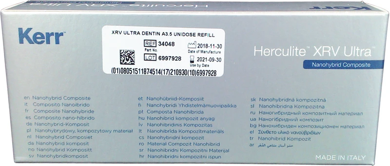 Seit mehr als 20 Jahren ist HERCULITE® XRV ein Standard im Bereich der Füllungsmaterialien. Basierend auf einer starken Marke wurde ein neues Füllungsmaterial entwickelt: HERCULITE® XRV Ultra Nanohybrid Komposit. Dieses innovative Komposit vereint hochmoderne Füllertechnologie mit erhöhter Ästhetik und optimierter Handhabung. Weitere überzeugende Eigenschaften sind die natürliche Opaleszenz und Fluoreszenz, erhöhte Verschleissfestigkeit, hohe Druckfestigkeit und überdurchschnittliche Bruchfestigkeit.
