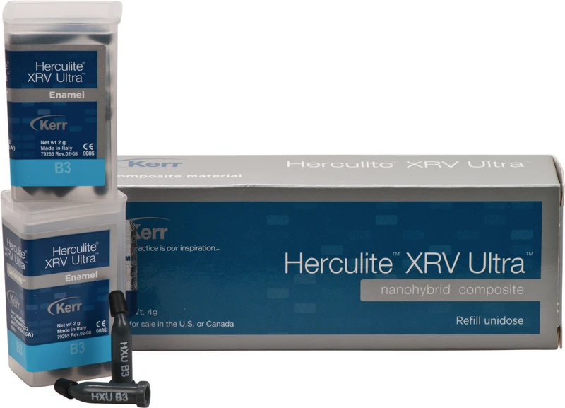 Seit mehr als 20 Jahren ist HERCULITE® XRV ein Standard im Bereich der Füllungsmaterialien. Basierend auf einer starken Marke wurde ein neues Füllungsmaterial entwickelt: HERCULITE® XRV Ultra Nanohybrid Komposit. Dieses innovative Komposit vereint hochmoderne Füllertechnologie mit erhöhter Ästhetik und optimierter Handhabung. Weitere überzeugende Eigenschaften sind die natürliche Opaleszenz und Fluoreszenz, erhöhte Verschleissfestigkeit, hohe Druckfestigkeit und überdurchschnittliche Bruchfestigkeit.