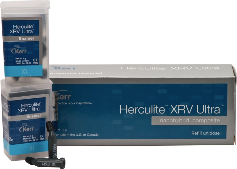 Seit mehr als 20 Jahren ist HERCULITE® XRV ein Standard im Bereich der Füllungsmaterialien. Basierend auf einer starken Marke wurde ein neues Füllungsmaterial entwickelt: HERCULITE® XRV Ultra Nanohybrid Komposit. Dieses innovative Komposit vereint hochmoderne Füllertechnologie mit erhöhter Ästhetik und optimierter Handhabung. Weitere überzeugende Eigenschaften sind die natürliche Opaleszenz und Fluoreszenz, erhöhte Verschleissfestigkeit, hohe Druckfestigkeit und überdurchschnittliche Bruchfestigkeit.