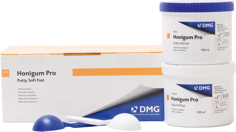 Honigum Pro Putty ist das Präzisionsmaterial in Putty-Konsistenz für detailgetreue Abformungen von Kronen und Brücken, Inlays und Onlays. Das Material verfügt über eine sehr gute Erhärtung bereits ab Mischbeginn sowie über eine sehr gute Reißfestigkeit bei hohem Rückstellvermögen. Honigum Pro Putty ist neben der klassischen Dose zur Handanmischung auch in der praktischen MixStar-Kartusche erhältlich.
