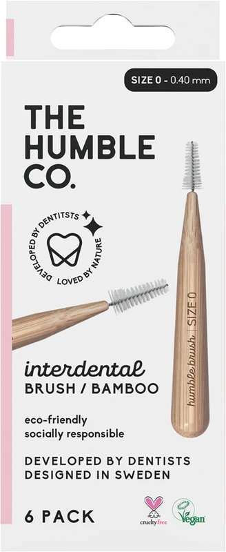Humble Interdentalbürsten sind eine umweltfreundliche Ergänzung bei der täglichen Zahnpflege. Der Griff aus 100 % nachhaltig angebautem Bambus ist natürlich antibakteriell und liegt besonders gut in der Hand. Die konische Borstenspirale ist aus BPA-freien Nylon 6 Borsten von Dupont gefertigt und in allen gängigen ISO Größen erhältlich.