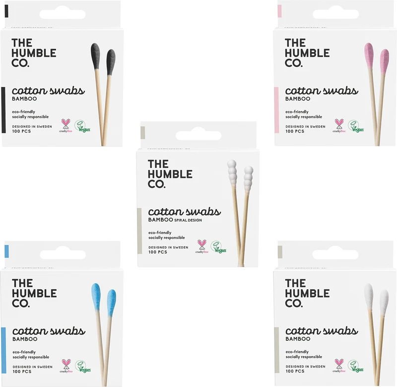 Humble Wattestäbchen sind die biologisch abbaubare, ökologische und umweltfreundliche Alternative zu herkömmlichen Kunststoffwattestäbchen. Der Griff wird aus 100 % nachhaltig angebautem Bambus gefertigt und die Watte besteht aus natürlich gefärbter reiner Bio-Baumwolle.Sowohl Wattestäbchen als auch die Spenderbox aus recyceltem Papier sind kompostierbar.