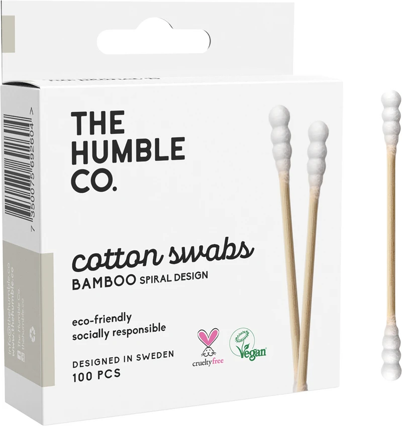 Humble Wattestäbchen sind die biologisch abbaubare, ökologische und umweltfreundliche Alternative zu herkömmlichen Kunststoffwattestäbchen. Der Griff wird aus 100 % nachhaltig angebautem Bambus gefertigt und die Watte besteht aus natürlich gefärbter reiner Bio-Baumwolle.Sowohl Wattestäbchen als auch die Spenderbox aus recyceltem Papier sind kompostierbar.
