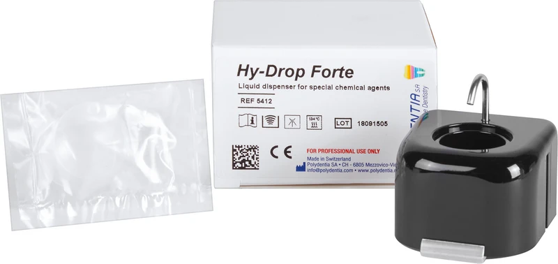 Hy-Drop Forte ist ein praktischer hygienischer Flüssigkeitsspender, der mit aggressiven chemischen Substanzen kompatibel ist, wie z. B.: ChKM-Lösung®, Fokaldry®, Orthoskavident® C, Tubulicid Red® + Blue® Label, Tubulicid Plus Endo®, Cavidex®.
