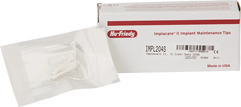 Implacare II - hart zu Ablagerungen, sanft zu Implantaten und Prothesen. Die Scaler der Reihe Implacare II, Hu-Friedys neuester Entwicklung zur Implantatreinigung, verfügen über eine 20 % dünnere Spitze und eine neue Form zur besseren Anpassung an das Implantat. So können Implantate unter möglichst geringer Veränderung der Abutment-Oberfläche effektiv gereinigt werden. Die Einwegspitzen sind aus Plasteel gefertigt, einem hochwertigen Kunstharz, welcher Titan nicht angreift. Plasteel-Instrumente sollten vor der Verwendung im Autoklav sterilisiert werden. Der leichtgewichtige Satin Steel Griff ist ergonomisch geformt für eine optimale Balance und Kontrolle und sorgt dank Rändeldesign für einen sicheren Griff.