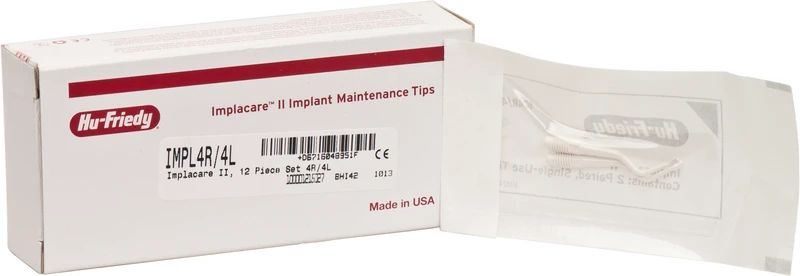 Implacare II - hart zu Ablagerungen, sanft zu Implantaten und Prothesen. Die Scaler der Reihe Implacare II, Hu-Friedys neuester Entwicklung zur Implantatreinigung, verfügen über eine 20 % dünnere Spitze und eine neue Form zur besseren Anpassung an das Implantat. So können Implantate unter möglichst geringer Veränderung der Abutment-Oberfläche effektiv gereinigt werden. Die Einwegspitzen sind aus Plasteel gefertigt, einem hochwertigen Kunstharz, welcher Titan nicht angreift. Plasteel-Instrumente sollten vor der Verwendung im Autoklav sterilisiert werden. Der leichtgewichtige Satin Steel Griff ist ergonomisch geformt für eine optimale Balance und Kontrolle und sorgt dank Rändeldesign für einen sicheren Griff.