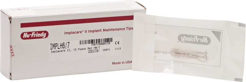 Implacare II - hart zu Ablagerungen, sanft zu Implantaten und Prothesen. Die Scaler der Reihe Implacare II, Hu-Friedys neuester Entwicklung zur Implantatreinigung, verfügen über eine 20 % dünnere Spitze und eine neue Form zur besseren Anpassung an das Implantat. So können Implantate unter möglichst geringer Veränderung der Abutment-Oberfläche effektiv gereinigt werden. Die Einwegspitzen sind aus Plasteel gefertigt, einem hochwertigen Kunstharz, welcher Titan nicht angreift. Plasteel-Instrumente sollten vor der Verwendung im Autoklav sterilisiert werden. Der leichtgewichtige Satin Steel Griff ist ergonomisch geformt für eine optimale Balance und Kontrolle und sorgt dank Rändeldesign für einen sicheren Griff.