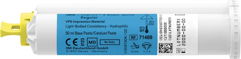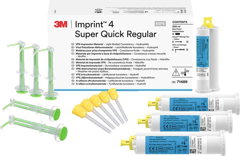 3M Imprint 4 VPS Abformmaterial ist in verschiedenen Varianten mit normalen und kurzen intraoralen Abbindezeiten erhältlich, so dass Sie das richtige Material für Ihre Abformung wählen können. Das macht es Ihnen leichter, Abformungen mit hoher Genauigkeit durchzuführen und somit die Grundlage für passgenaue Restaurationen zu schaffen, während gleichzeitig der Stress für Sie und Ihre Patienten reduziert wird.