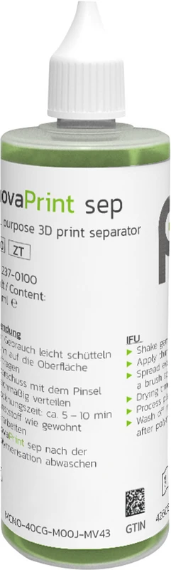 InovaPrint sep ist eine Isolierung, die mit einer hauchdünnen Schicht das 3D gedruckte Modell optimal gegen Dentalkunststoffe (Autopolymerisat und Composite) isoliert. Ob in der Kieferorthopädie oder Zahntechnik Einsatz findet InovaPrint sep überall dort, wo 3D gedruckte Modelle verwendet werden. Perfekte Ergebnisse auf 3D gedruckten Resin- und Filament Modellen.