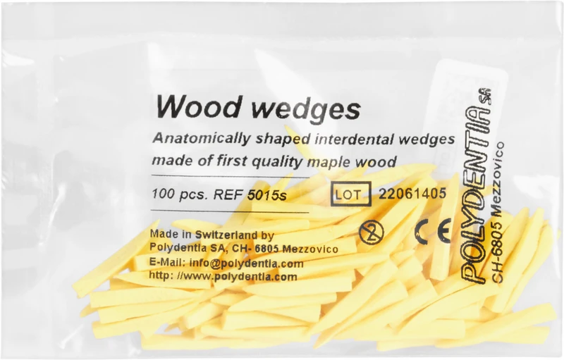 Hergestellt mit zertifiziertem Ahornholz aus naturnah bewirtschafteten Wäldern, gestatten diese Interdentalkeile eine optimale Anpassung der Matrize an die zervikale Stufe des Zahns. Einzeln und sorgfältig vorbereitet, sind sie einer einwandfreien Endbearbeitung unterzogen. Verschiedene Größen: XS für die Kinderzahnmedizin, XL für die Parodontologie. Die XL-Keilchen sind nicht in der assortierten Packung enthalten.Box