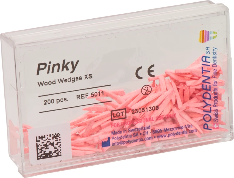 Hergestellt mit zertifiziertem Ahornholz aus naturnah bewirtschafteten Wäldern, gestatten diese Interdentalkeile eine optimale Anpassung der Matrize an die zervikale Stufe des Zahns. Einzeln und sorgfältig vorbereitet, sind sie einer einwandfreien Endbearbeitung unterzogen. Verschiedene Größen: XS für die Kinderzahnmedizin, XL für die Parodontologie. Die XL-Keilchen sind nicht in der assortierten Packung enthalten.Box