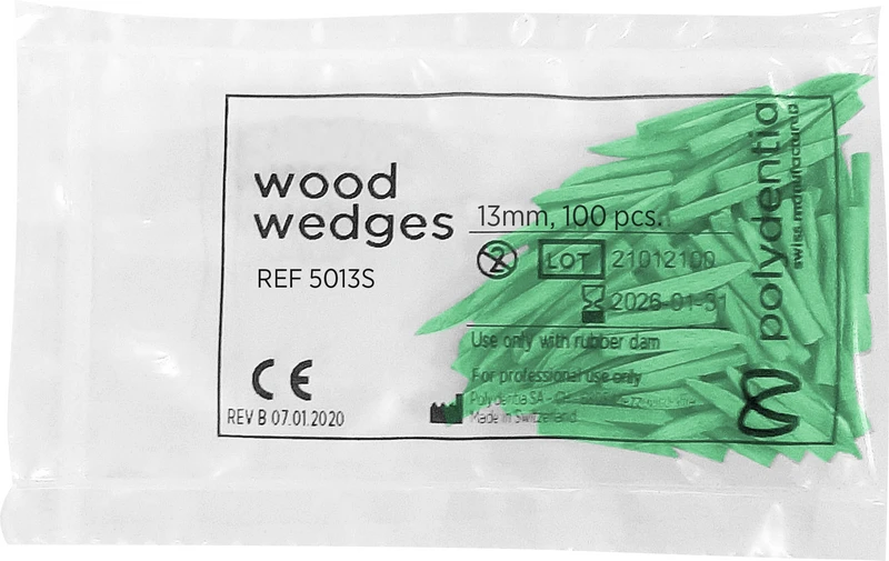 Hergestellt mit zertifiziertem Ahornholz aus naturnah bewirtschafteten Wäldern, gestatten diese Interdentalkeile eine optimale Anpassung der Matrize an die zervikale Stufe des Zahns. Einzeln und sorgfältig vorbereitet, sind sie einer einwandfreien Endbearbeitung unterzogen. Verschiedene Größen: XS für die Kinderzahnmedizin, XL für die Parodontologie. Die XL-Keilchen sind nicht in der assortierten Packung enthalten.Box