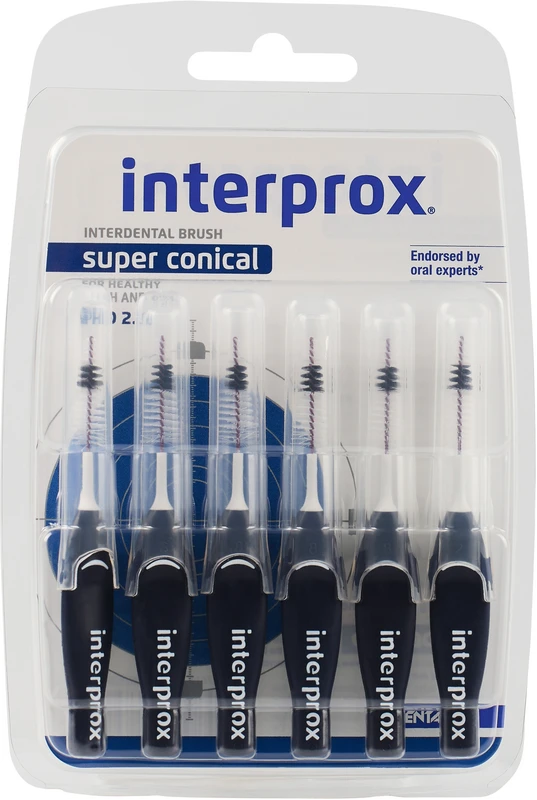 Interprox® passt sich allen Zwischenräumen an. Es sind zylindrische- oder konische Bürstenköpfe erhältlich. Erstere werden für die Reinigung zwischen den Vorderzähnen empfohlen, während letztere besser für die Zahnzwischenräume der vorderen und hinteren Backenzähne geeignet sind.