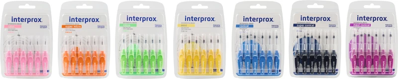 Das Sortiment lässt sich je nach Form des Bürstenkopfes und anderer technischer Merkmale in zwei Bürstentypen unterteilen: Interprox® und Interprox® plus. Beide können für die Reinigung der Zahnzwischenräume in jedem beliebigen Bereich der Mundhöhle verwendet werden. Für eine komfortablere Anwendung empfiehlt sich jedoch die folgende Verwendung: Interprox® plus für die hintere Mundhöhle (der abgewinkelte Kopf erleichtert den Zugang), Interprox® für die vorderen Zahnzwischenräume (die Schutzkappe kann auf den flexiblen Griff aufgesteckt werden, wodurch der Zugang zu den hinteren Bereichen erleichtert wird).