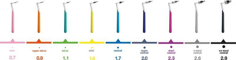 Interprox® passt sich allen Zwischenräumen an. Es sind zylindrische- oder konische Bürstenköpfe erhältlich. Erstere werden für die Reinigung zwischen den Vorderzähnen empfohlen, während letztere besser für die Zahnzwischenräume der vorderen und hinteren Backenzähne geeignet sind.