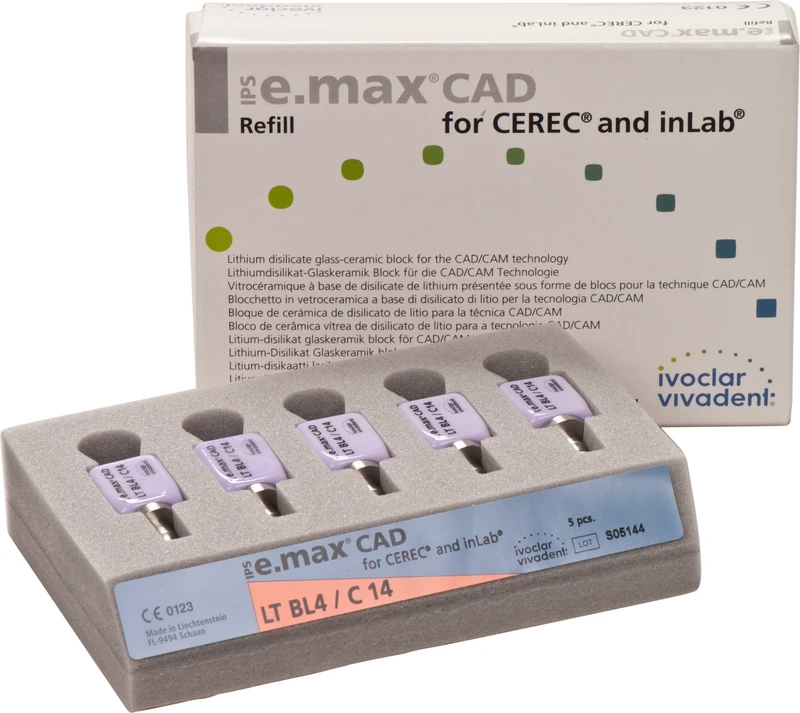 Die IPS e.max CAD for CEREC/inLab ist eine hochfeste Lithiumdisilikat-Vollkeramik, mit idealen ästhetischen Eigenschaften. Die Keramikblocks sind optimal für die Herstellung von vollanatomischen Kronen, Inlays und Veneers geeignet und werden im inLab-System oder CEREC-System (Sirona) verarbeitet. Die Blocks sind in unkristallisiertem Zustand bläulich und leicht bearbeitbar. Nach dem Kristallisationsbrand ist die Keramik zahnfarben und hochfest. IPS e.max Kronen aus CAD LT können selbstadhäsiv oder konventionell befestigt werden.