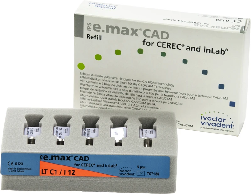 Die IPS e.max CAD for CEREC/inLab ist eine hochfeste Lithiumdisilikat-Vollkeramik, mit idealen ästhetischen Eigenschaften. Die Keramikblocks sind optimal für die Herstellung von vollanatomischen Kronen, Inlays und Veneers geeignet und werden im inLab-System oder CEREC-System (Sirona) verarbeitet. Die Blocks sind in unkristallisiertem Zustand bläulich und leicht bearbeitbar. Nach dem Kristallisationsbrand ist die Keramik zahnfarben und hochfest. IPS e.max Kronen aus CAD LT können selbstadhäsiv oder konventionell befestigt werden.