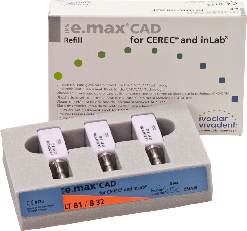 IPS e.max CAD Monolithic Solution for CEREC\inLab Packung 3 Stück A-D Gr. B32, B1 LT