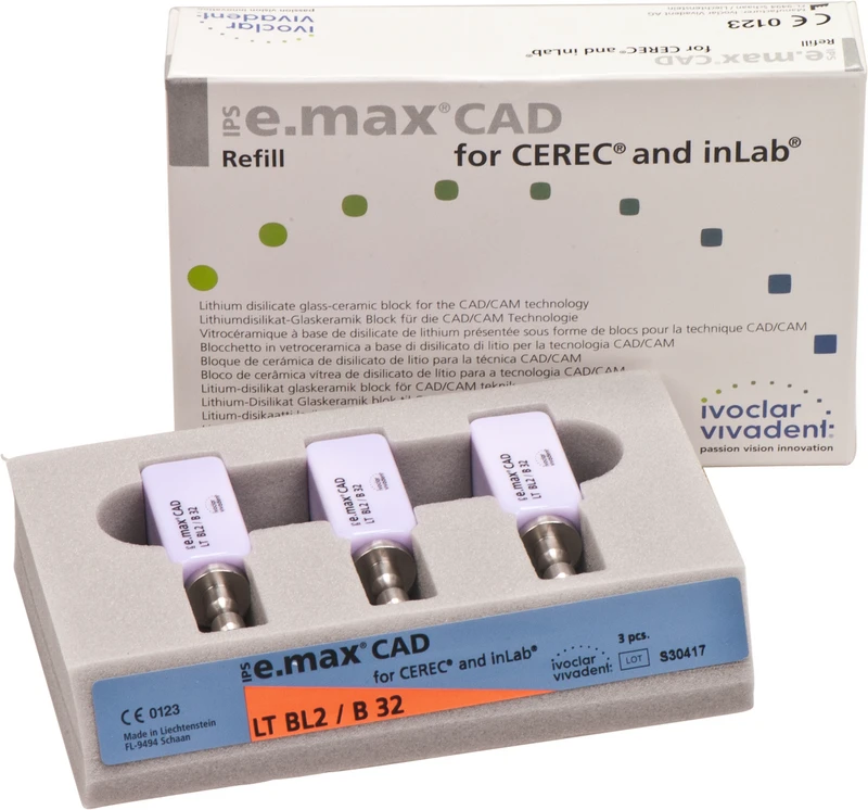 IPS e.max CAD Monolithic Solution for CEREC\inLab Packung 3 Stück A-D Gr. B32, BL2 LT
