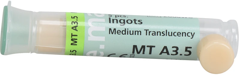 IPS e.max® Press MT Rohlinge sind monochromatische Lithium Disilikat Rohlinge (LS2) für die Press Technologie mit 500 MPa Biegefestigkeit: