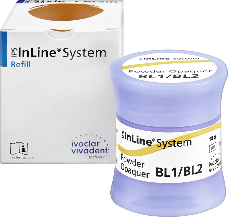 Der IPS InLine® System Pulveropaquer ist ein in einem neuen Herstellungsverfahren entwickelter Pulveropaquer mit optimierten Eigenschaften für die metallkeramische Schicht und Presstechnik. Der IPS InLine® System Pulveropaquer ist abgestimmt auf aufbrennfähige Legierungsgerüste hergestellt mittels der Guss, CAD/CAM und Laser Schmelz Technik.